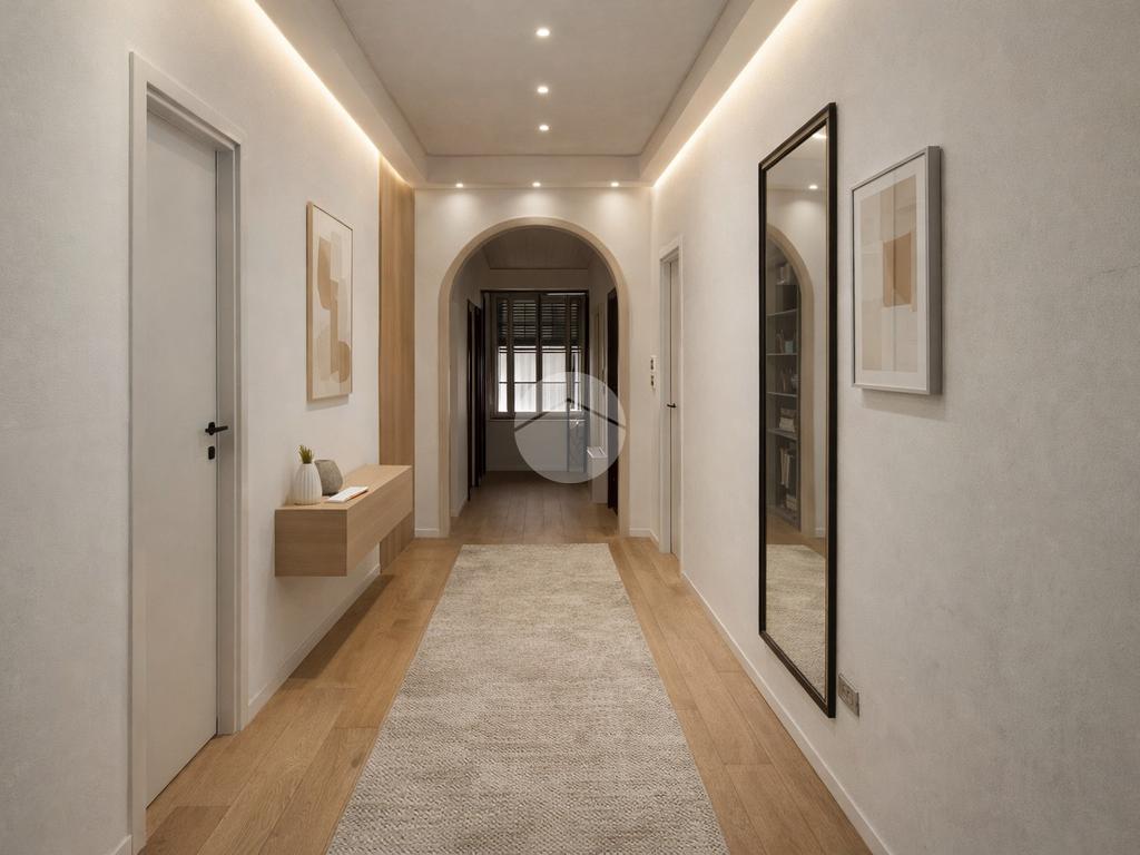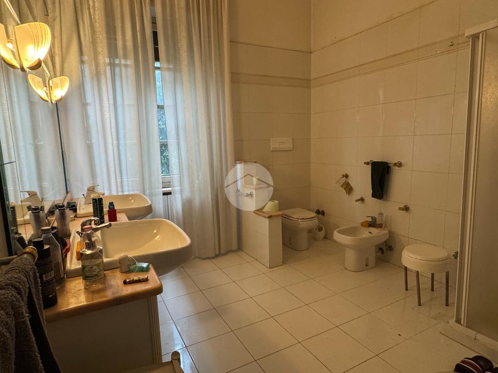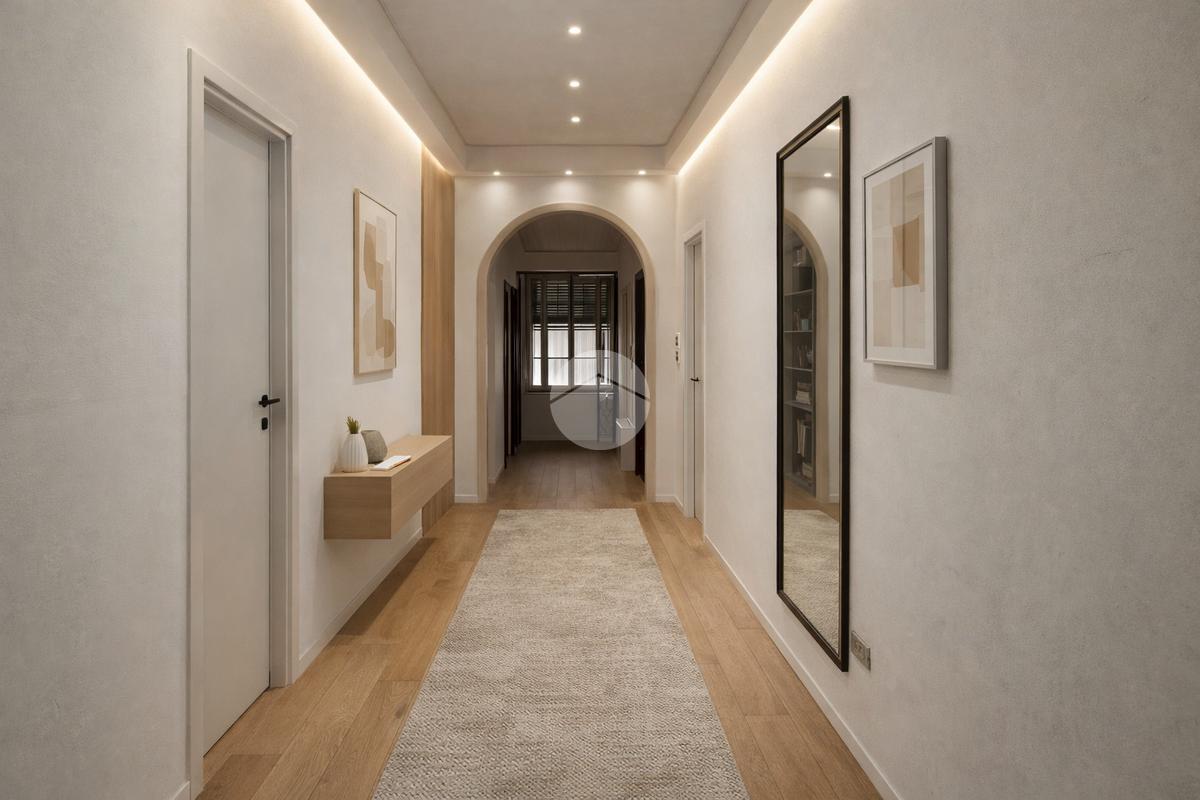 Posto al primo piano di una palazzina dotata di ascensore, l'appartamento è di 261 mq con triplo ingresso.